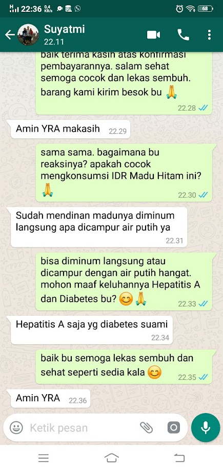 IDR Madu Hitam hanyalah sebagai perantara. Faktor kesehatan, faktor lingkungan, dan faktor kondisi tubuh seseorang sangat berpengaruh terhadap reaksi kesembuhan.